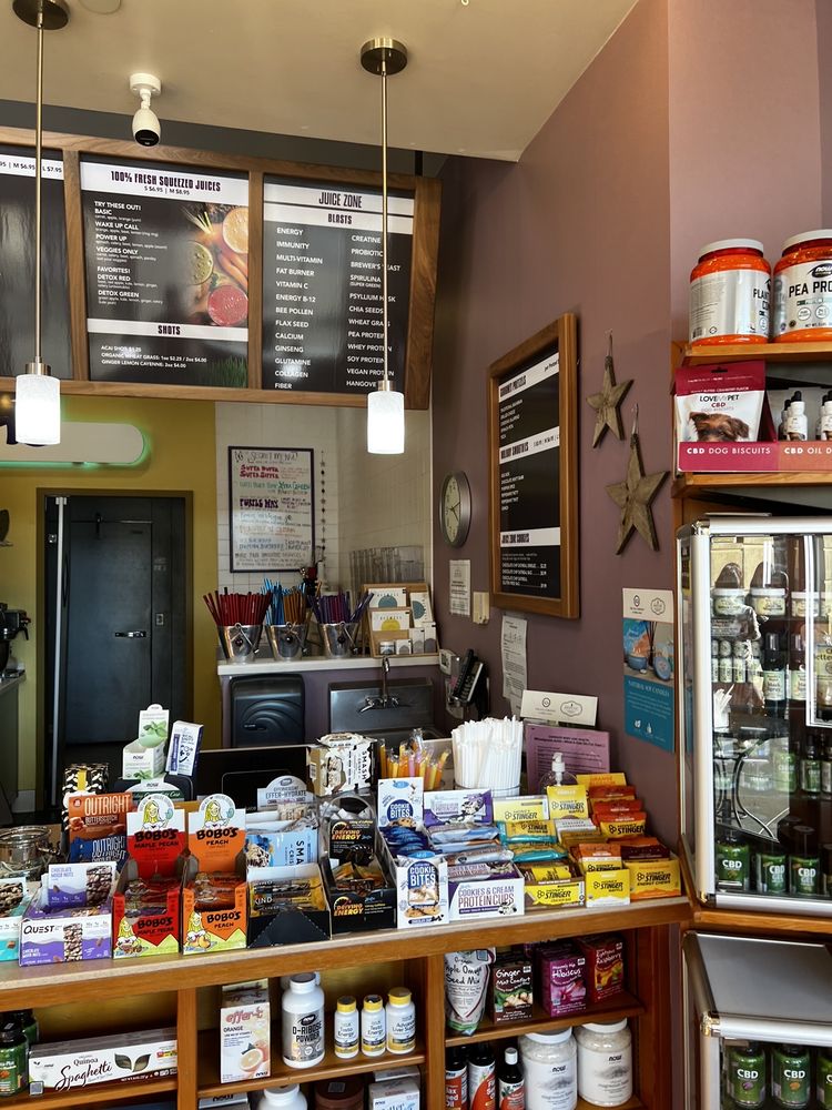 Introducing Juice Zone, a health market specializing in juice bars and smoothies located in Danville, CA. Offering a variety of options from classic smoothies like the California Cooler to juice-based power smoothies like the Mellow Yellow, Juice Zone caters to all tastes. Customer favorites include the Burner Juice and the Super Sipper, perfect for a post-workout refuel. With options for extra protein and healthy add-ons, Juice Zone stands out from other smoothie spots with its quality and affordability. The welcoming ambiance, friendly staff, and quick service make it a go-to spot for smoothie enthusiasts. Don't miss out on trying the Mango-Pineapple for a taste of the island beach vibe in a drink. Juice Zone is a must-visit for anyone looking for delicious, nutritious, and energizing beverages.